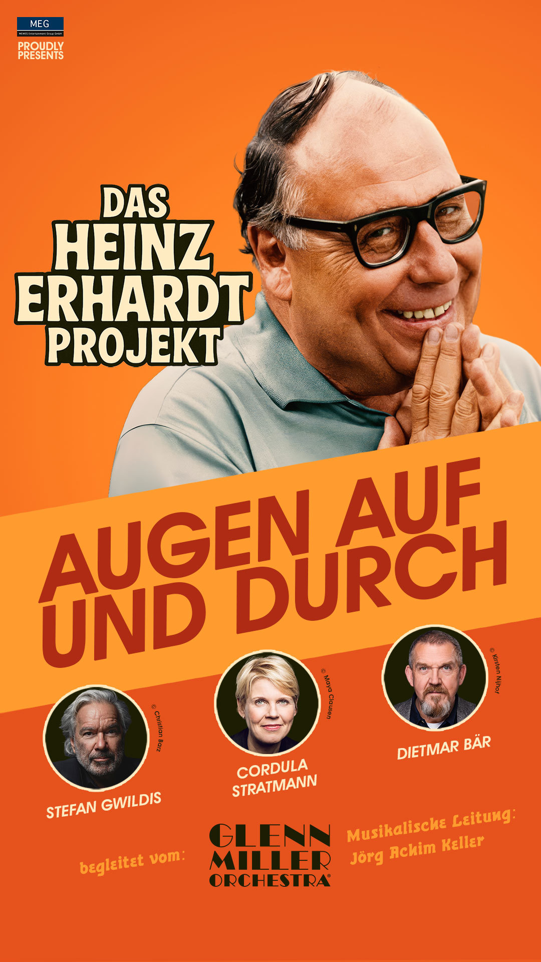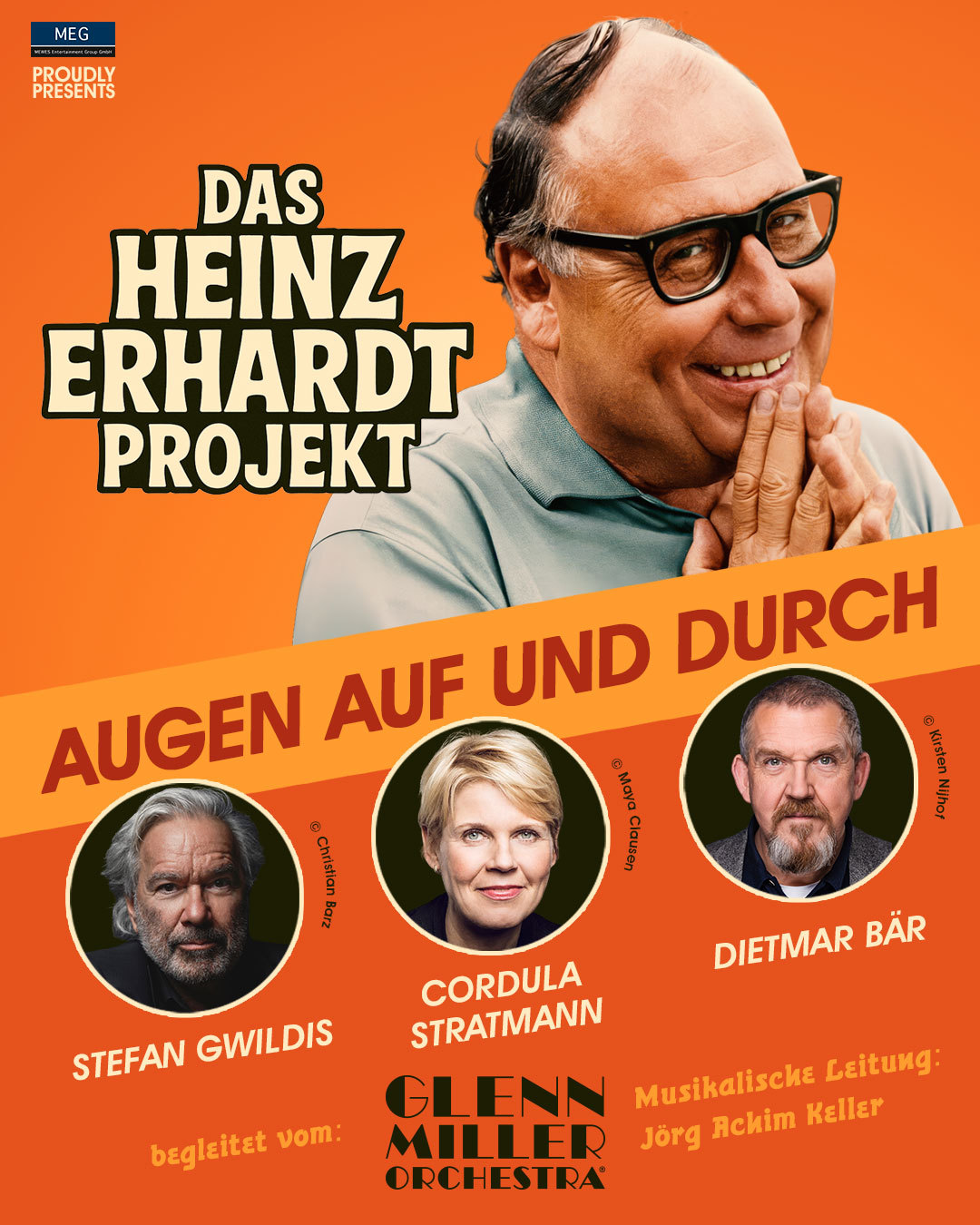 Ein Abend voller Witz, Swing und Überraschungen: 2026 geht das HEINZ ERHARDT-Projekt „Augen auf und durch“ auf große Tournee – in neuer Besetzung, mit dem legendären Glenn Miller Orchestra und sogar einer Uraufführung eines bisher unveröffentlichten Titels von Heinz Erhardt.