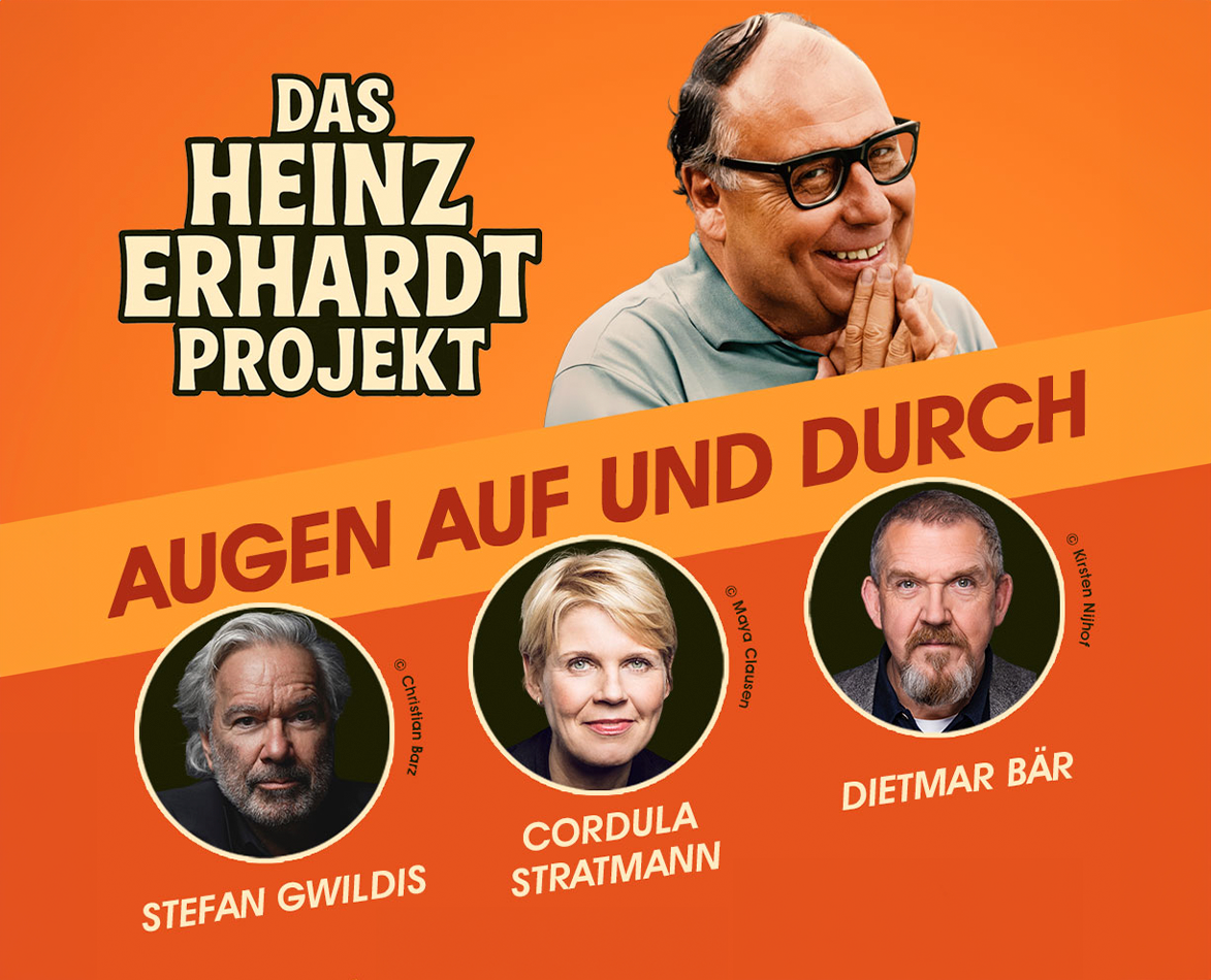 Im Zentrum des Programms stehen drei Publikumslieblinge: Cordula Stratmann, Dietmar Bär und Stefan Gwildis. Gemeinsam lassen sie die Texte, Lieder und den einzigartigen Wortwitz von Heinz Erhardt neu aufleben – mal charmant, mal swingend, mal voller Soul.
