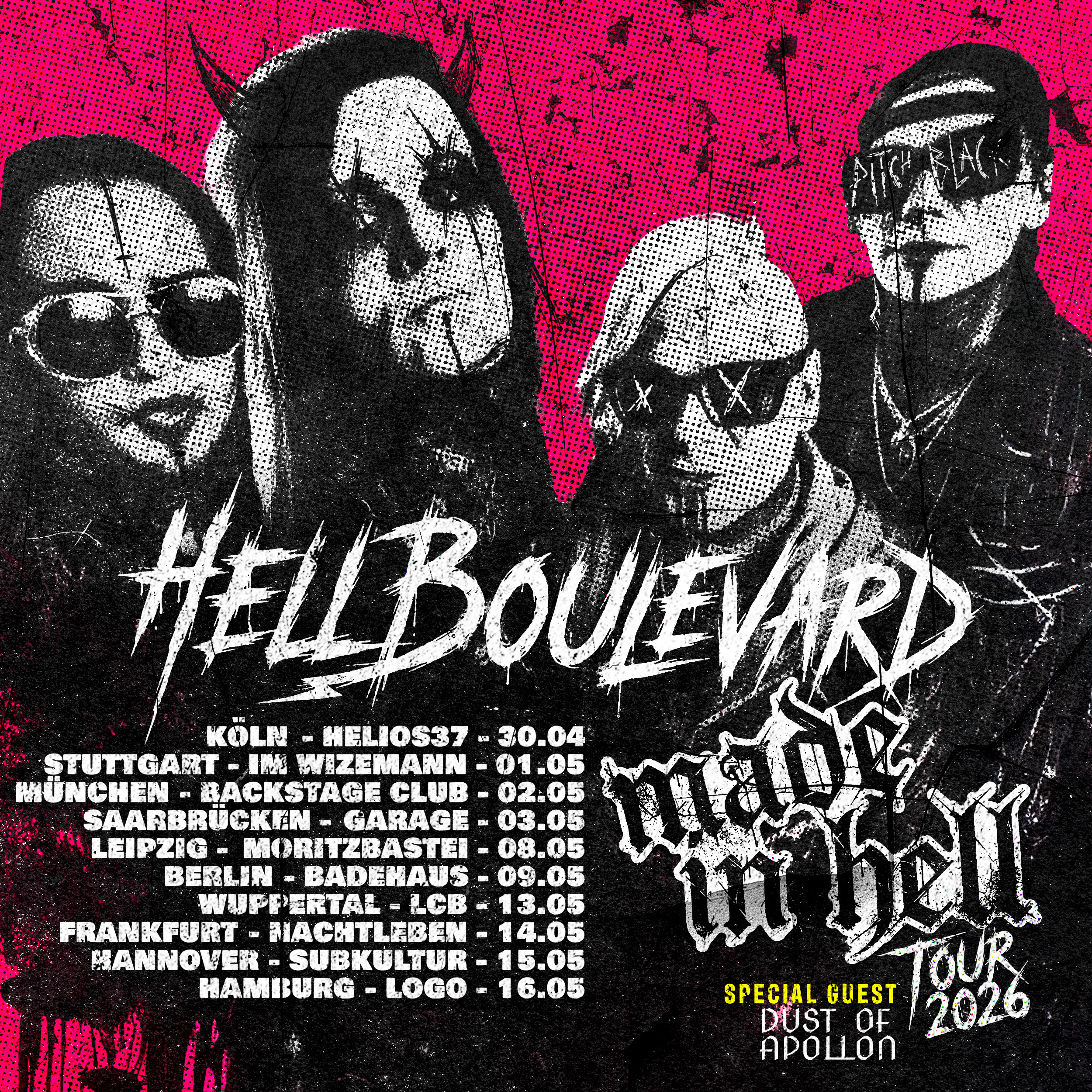 Begleitet werden Hell Boulevard auf der gesamten Tour von Dust of Apollon als Special Guests – ein starkes Paket, das bereits jetzt energiegeladene Abende und eine dichte, atmosphärische Live-Erfahrung verspricht.